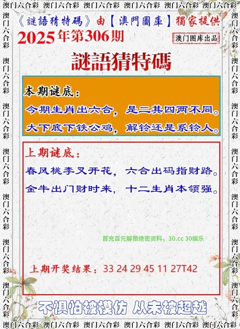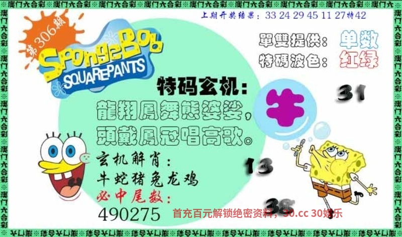 306期:天地中特【天肖天肖】开:牛17中